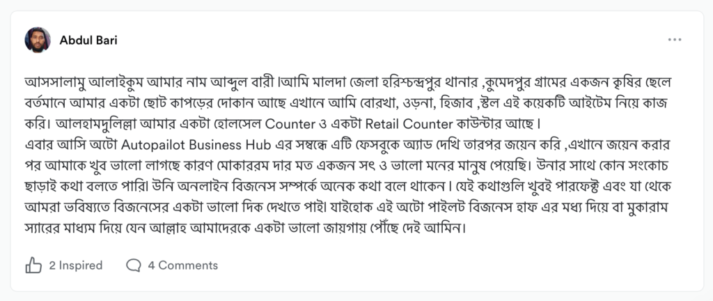 - ✅ যে ব্যবসা সম্পর্কে সঠিক ধারণা ও দিক নির্দেশনা পেতে চায়