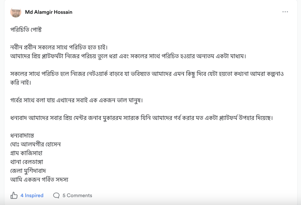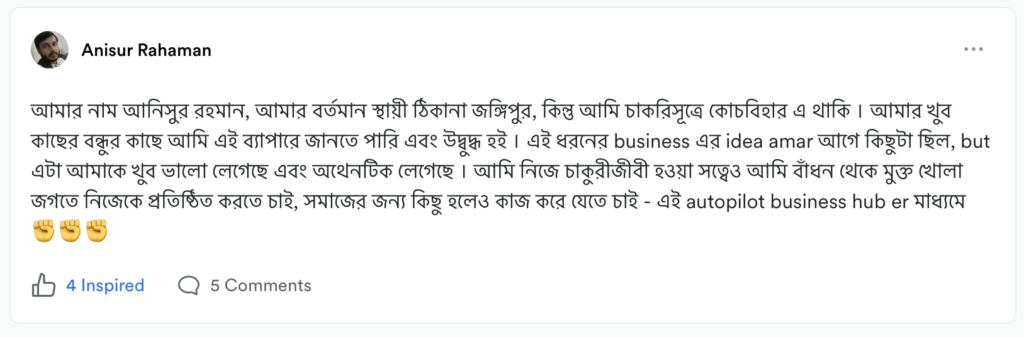🤝 কমিউনিটি ইন্টারঅ্যাকশন: অন্য উদ্যোক্তাদের সঙ্গে নেটওয়ার্ক গড়ে তুলুন।