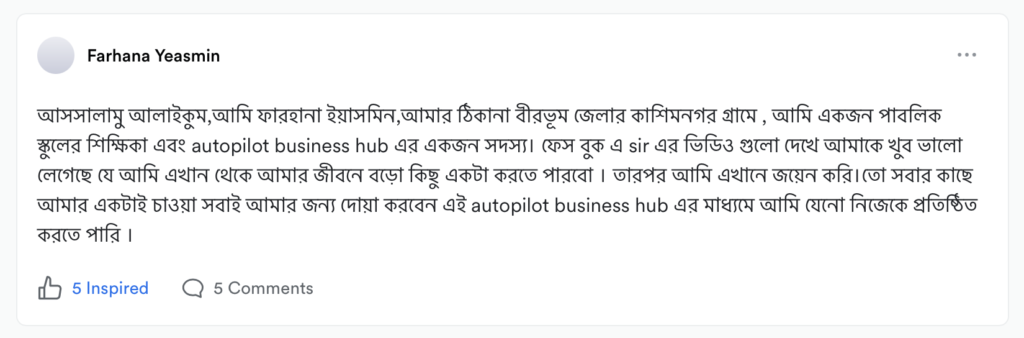 Autopilot Business Blueprint এমন একটি প্রোগ্রাম যা আপনাকে আপনার অনলাইন ব্যবসা তৈরি করতে, পরিচালনা করতে এবং দ্রুত এগিয়ে নিয়ে যেতে সাহায্য করবে, ইন শা আল্লাহ। আমরা এতটাই আত্মবিশ্বাসী যে একবার শুরু করলে, আপনিও একে ভালোবাসতে বাধ্য হবেন!