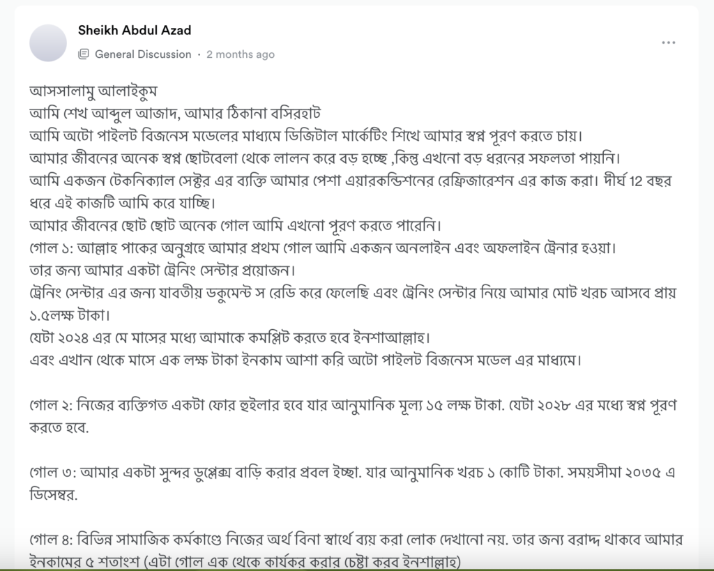 💡 লাইভ সাপোর্ট, কমিউনিটি সহায়তা ও প্রশ্নোত্তর পর্বের মাধ্যমে আপনি যেকোনো বিজনেস সমস্যা সমাধানের বাস্তব উপায় শিখতে পারবেন, যা আপনাকে আত্মবিশ্বাসী ও দক্ষ উদ্যোক্তা হিসেবে গড়ে তুলবে।